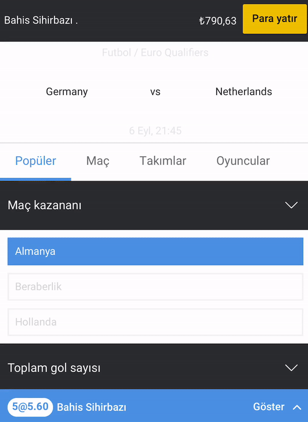Bundan sonra Bets10’un Bahis Sihirbazı sayesinde güvendiğin bir maçın özel bahislerini kombine edebilir ve maçın bütün fırsatlarından yararlanabilirsin!