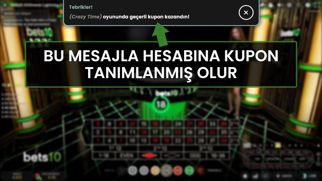 Birbirinden muhteşem canlı casino oyunu ve kampanyaların yer aldığı Bets10'da oynamanın ayrıcalığını Kupon Kampanyası'yla yaşayabilirsin! Çünkü bu kampanyayla asla kayıp yaşamayacaksın!